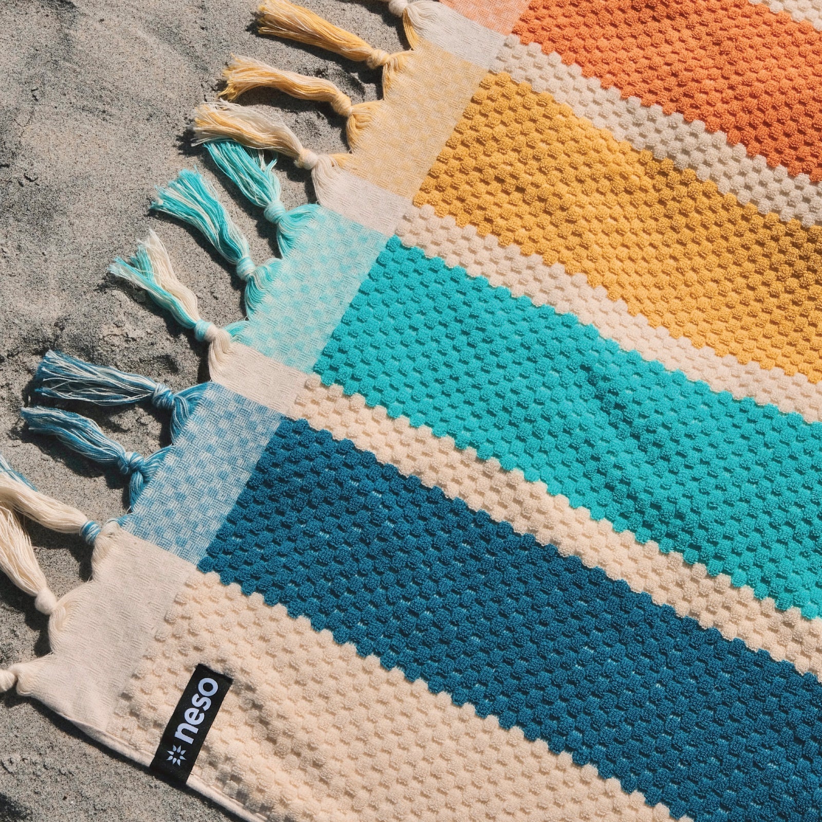 ¡Nuestra toalla de playa extra grande es funcional, super suave y bellísima!